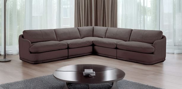 Includes left hand facing chair, 2 armless chairs, corner wedge and right hand facing chair. in a chocolate leather match cover.Read More