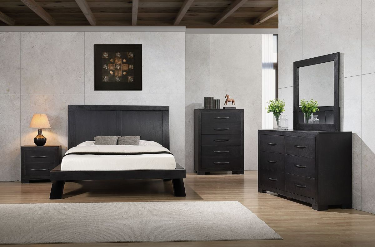 With clean lines throughout, this piece creates a cohesive and sophisticated look for your space. The nightstand, chest of drawers, and dresser included in this set are beautifully accented by chrome finished hardware, adding a touch of modernity to the collection. Bring elegance and functionality to your bedroom with the Allan Black Bedroom collection.