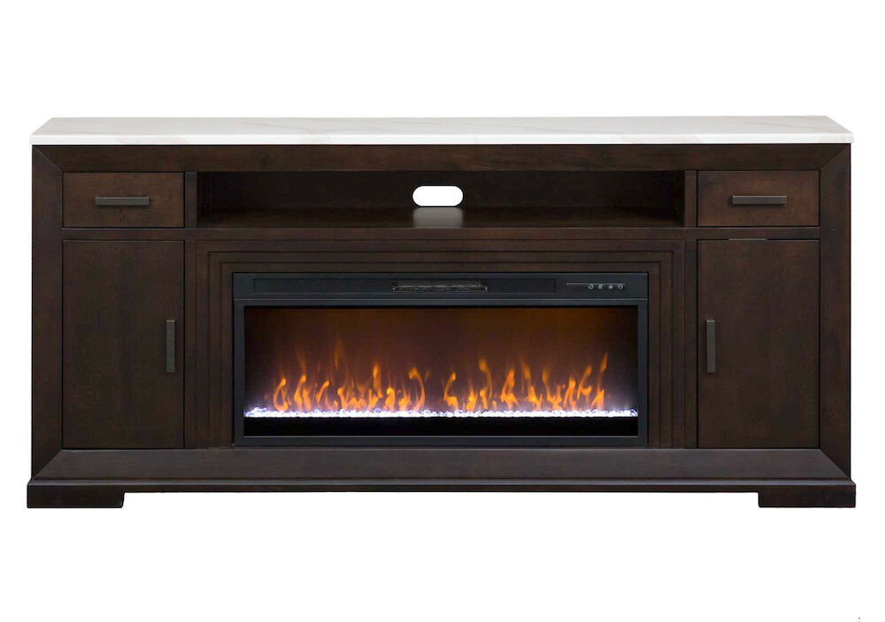 The Avalon 84" Media Console and Firebox is the companion your living room has been waiting for. Immaculate in its au courant design, the faux marble top and darkly finished frame deliver on polished style and a maximum of space for storage and decorative display. Seated in the central compartment is a remote-controlled firebox capable of providing 5,200 BTU of heat for a 400 square foot space. It's the ideal centerpiece to have on hand for those cozy nights in.Read More