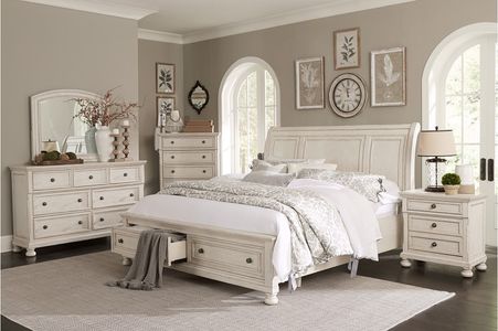An updated classic addition for your transitional bedroom is the Bethel 4-Pc Bedroom Set. Traditional accents, such as, turned bun feet that support each piece, and an antique white, lightly wire-brushed finish on ash veneer and selected hardwoods, blends with framing and lines that complement your personal style.Read More