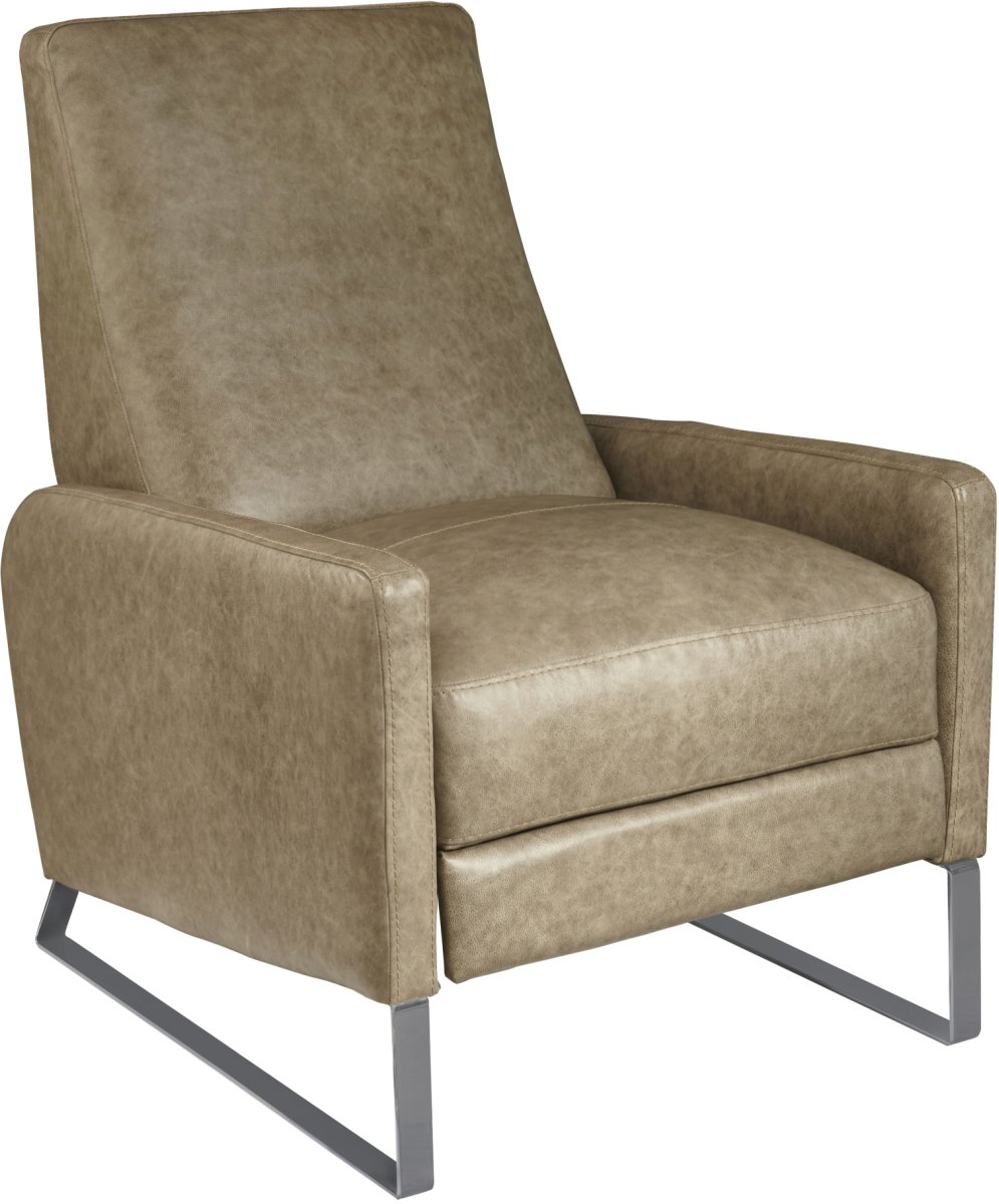 Featuring upscale Cobblestone Taupe Italian leather and a champagne-colored metal sleigh-style base, this multifaceted chair can be reclined in seconds. Simply push on the arms, lean back, and allow the footrest to rise, prompting instant relaxation.
