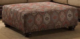 This cocktail ottoman from Albany Industries finished in Sublime Treasure, Texas Canyon, and Yellowstone Chocolate features an elaborate design, turned legs, and nailhead trim. Adopt a comforting and classy look in your living room with this ottoman.Read More