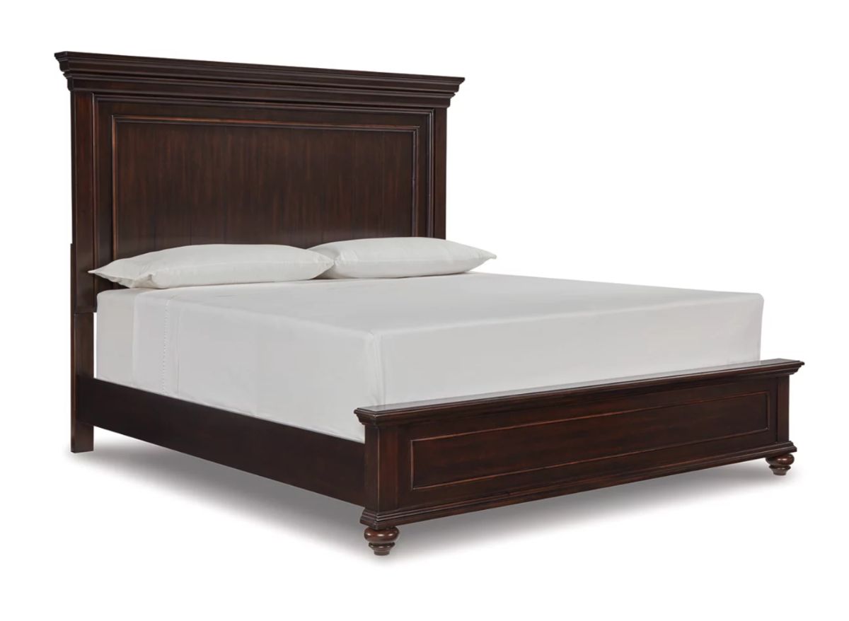 Who says you can’t have it all? The Chateaux King Panel Bed is everything you ever wanted in a bedroom centerpiece. Generously scaled proportions and a rich walnut-tone finish with hand-rubbed highlights radiate a sense of warmth and elegance. Whether your look is laid back or high style, the clean-lined design of this bed ensures it's an easy addition to your bedroom's motif.Read More