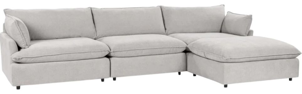 The Caplan 4-Piece Gray Modular Elite Sectional offers luxurious comfort and endless versatility. Designed with deep seating and generously filled with feather and down, it provides an ultra-cozy lounging experience. Upholstered in soft, durable fabric, combines modern style with plush comfort, making it ideal for both entertaining and relaxation.Read More