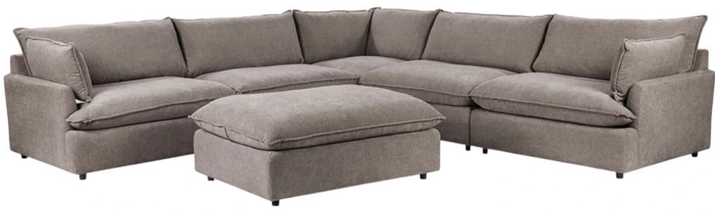 The Caplan 5-Piece Charcoal Modular Elite Sectional offers luxurious comfort and versatility. Designed with deep seating and generously filled with feather and down, it provides an ultra-cozy lounging experience. Upholstered in soft, durable fabric, combines modern style with plush comfort, making it ideal for both entertaining and everyday relaxation.Read More