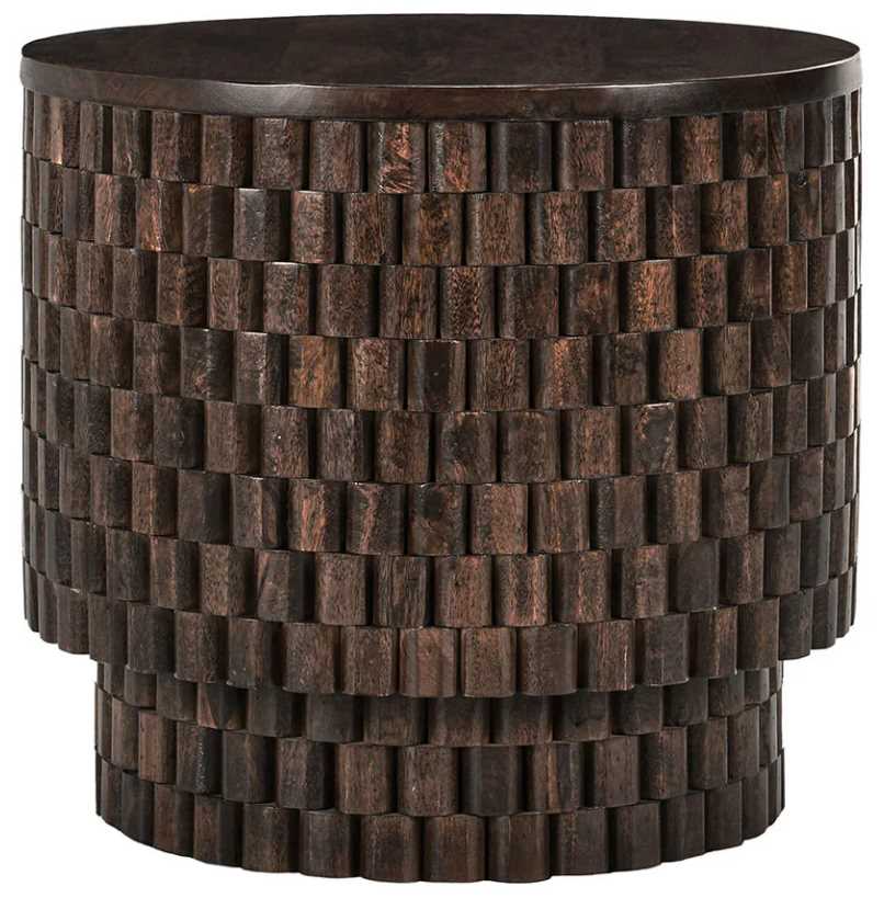 With its eye-catching, dimensional look, this end table elevates any decor with vivid texture and the beauty of mango wood. Deep hues in the rich brown finish complement most color schemes and showcase the lively grain pattern of natural wood.Read More