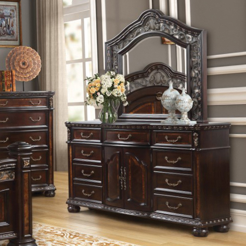 Antiquity and opulence go hand-in-hand with the Cordoba dresser and mirror. Decadent dark finishes, foliate detailing, and all the intricate flourishes of a palace's taste show their stamp on every angle. Elevate your master bedroom to with sophistication and grandeur with Cordoba.Read More
