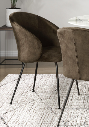 The Cosimo Collection’s side chair is an elegant complement to your dining room’s décor. Brown velvet fabric upholstery covers the side chair and features black metal legs.Read More
