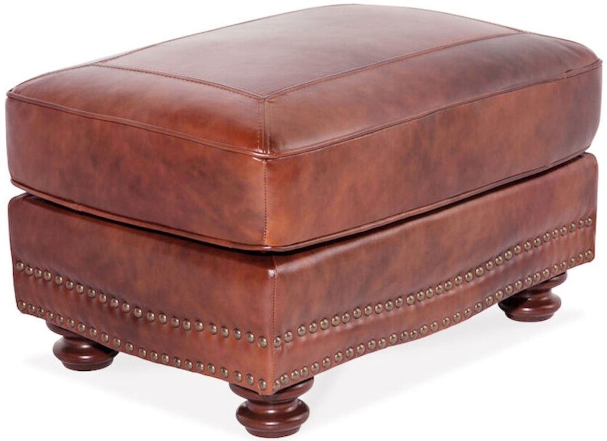 Rest easy and kick up your boots on the Cowboy Top-Grain Leather Ottoman. Upholstered in soft and supple caramel top-grain leather, the ottoman has an effortlessly elegant look, perfect for your transitional style home. The plush cushion adds comfort, while the nail head trim and wood bun feet add style.Read More