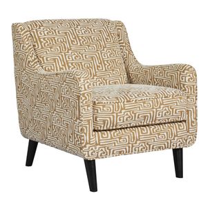 The Zeitgeist Squash Accent Chair blends textures and materials for a sophisticated yet inviting look. This chair will add interest and warmth into your space, while also providing reliable comfort. Features sloping track arms, tapered wood legs, and a geometric pattern.Read More