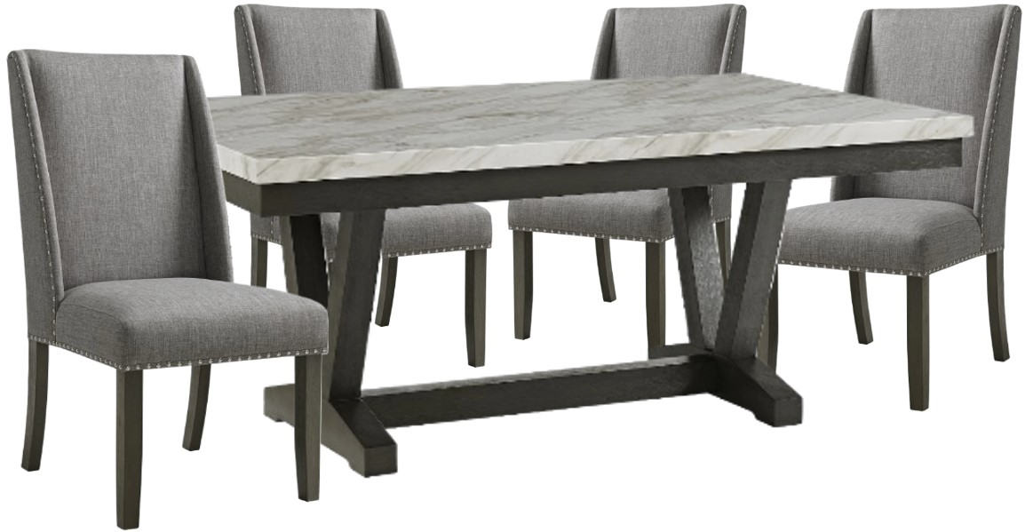 Enhance your dining space with the Everdeen 5-piece gray/white standard height dining set. Featuring a sleek gray tabletop with a crisp white base and four matching chairs, this set combines modern design with comfortable seating—perfect for casual meals and stylish entertaining.Read More