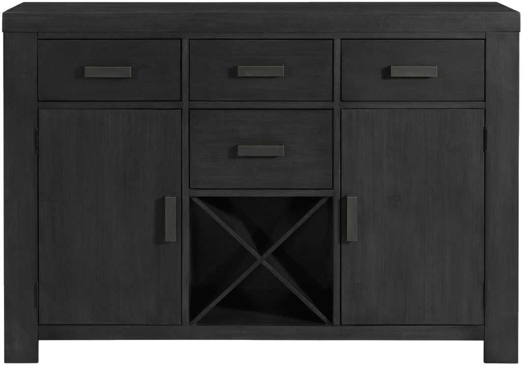 The Grady Server is the perfect solution to your storage problem! This server comes with four, spacious drawers so you can easily store away any extra server ware or linens. The cabinets have an adjustable and removable shelf on the inside; allowing you to customize and maximize your storage space. The dark metal hardware complements the black finish beautifully. There's an extra cubby space at the bottom that can be utilized how you see fit! Add this server to your dining room today for a look that will last year after year.