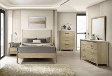 The Jonas nightstand pairs natural warmth with modern convenience, featuring a smooth natural wood finish and an elegant faux-marble paper top. Its compact design includes a single storage drawer and a built-in USB port, making it a stylish and functional bedside essential for contemporary living.Read More