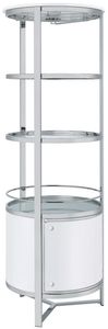 The Lalia wine rack with LED features multiple open glass shelves allow you to decorate, perfectly complementing hidden storage in the bottom cabinet. Two wine glass holders and a convenient LED light adorn the top shelf, while the sleek, chrome finish of the cylindrical frame adds unique, eye-catching style.Read More