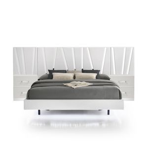 The Europa Panel Wall Bed with 2-Nightstands offers a blend of modern elegance and practical design. This set includes a panel bed, 2-nightstands, and 2-nightstand back panels. The sleek, integrated headboard wall and nightstands creates a seamless and sophisticated look, enhanced by the white finish, mylar accents, and acrylic drawer pulls. Built with quality craftsmanship, the eco-friendly manufactured woods ensure durability, while the surfaces are finished with a glossy white topcoat and padded upholstery for added comfort. The bed features upscale extras like soft blue base lighting that reflects off the silver mylar bases, casting an ambient glow. The sturdy drawers, constructed with dovetail joinery and ball bearing glides, provide durable, easy-glide storage with snag-free interiors. The 2-drawer nightstands offer ample storage for bedside essentials. Choose the Europa Panel Wall Bed for a luxurious and contemporary addition to your bedroom.Read More