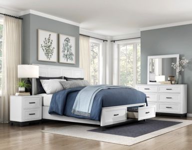 The Garretson 4-Pc Twin Bedroom Set delivers a bright, modern look perfect for growing kids and teens. Finished in crisp white with panel detailing and dark metal hardware, this set combines clean styling with practical storage. With a full bed featuring underbed drawers, a spacious dresser with mirror, and a functional nightstand, it creates a clean, organized space that grows with your child.Read More