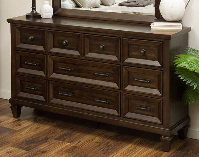 Thoughtfully designed to offer extra space, this collection is crafted with care from select cherry veneers and hardwood solids. Finished in a rich dark walnut, it combines lasting durability with timeless style. Complete your space with the coordinating mirror for a cohesive look.Read More