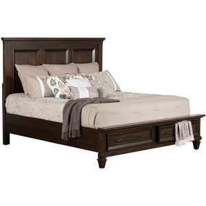 Designed to provide a spacious and serene sleeping environment. Crafted with care, this collection is made with select cherry veneers and hardwood solids, ensuring both durability and an attractive appearance. Bed includes Headboard, Footboard, Rails, Slats and Center Support in a Dark Walnut FinishRead More