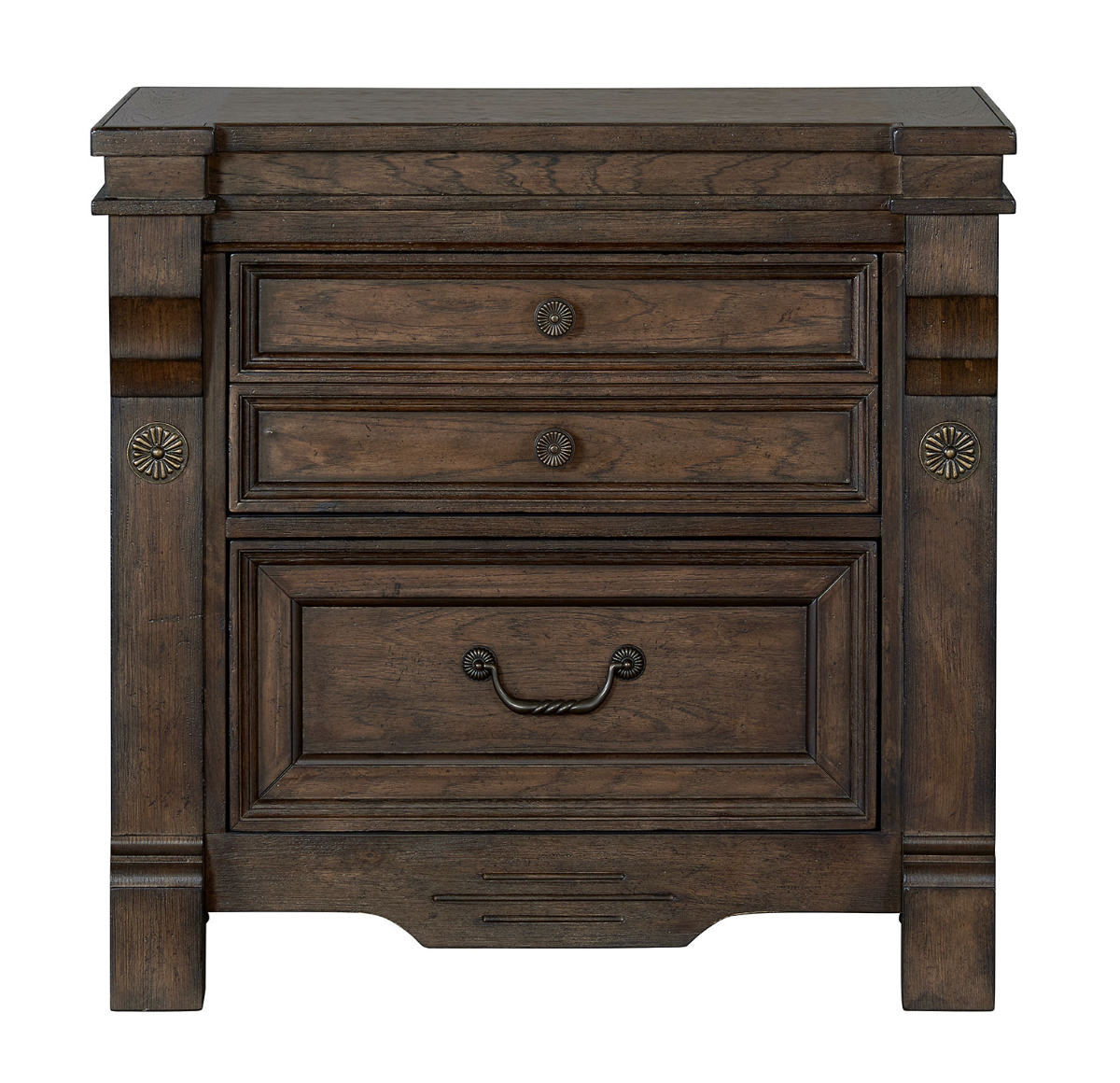 | Nightstand Features | Distressed Look, Felt-Lined Drawer, USB Ports, Hidden Drawer |
