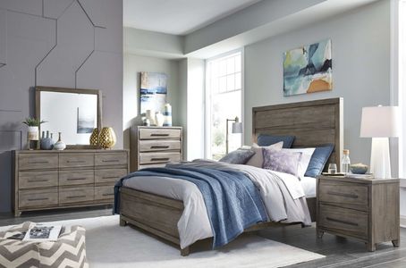 Asymmetrical chamfered planks add a touch of the unexpected to this modern rustic queen panel bedroom collection. The beauty of the wood is sure to become a focal point of your bedroom. Make a bold statement by incorporating this stunning furniture into your home.Read More