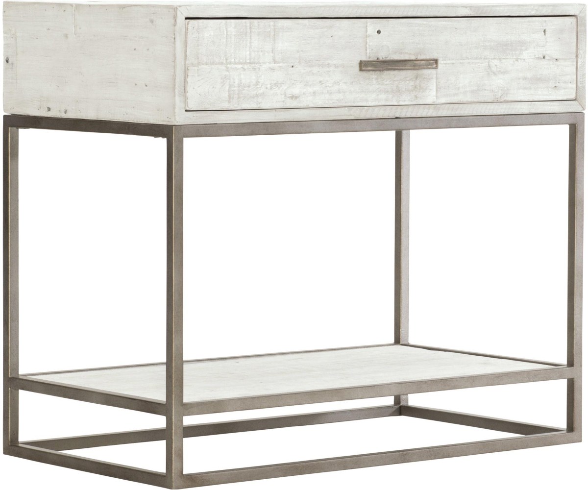 The Bernhardt Alvar Nightstand features a tubular steel base in a glazed silver finish with one bottom wood shelf with planked design.Read More