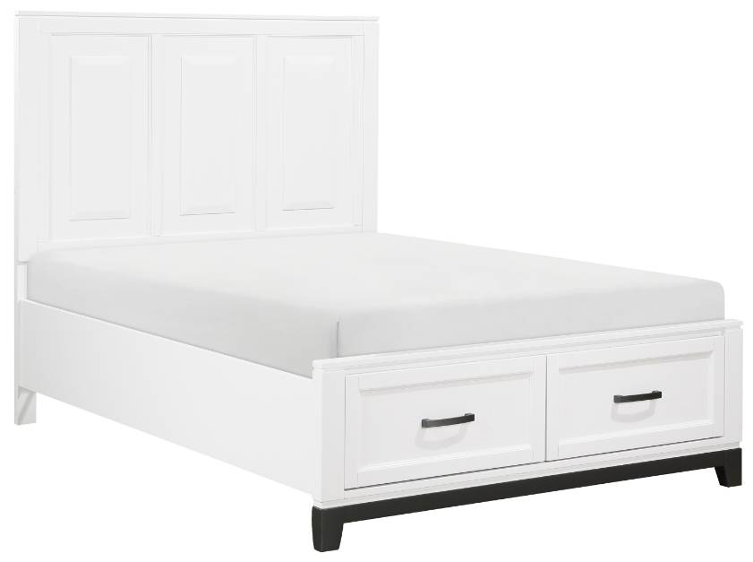The Garretson Collection blends transitional lines with rustic styling to create an elegant addition for your bedroom. The full bed features a white finish and metal bar hardware on the picture frame drawer fronts of the low-profile storage footboard, the two drawers creating additional space within your room for soft good storage.Read More
