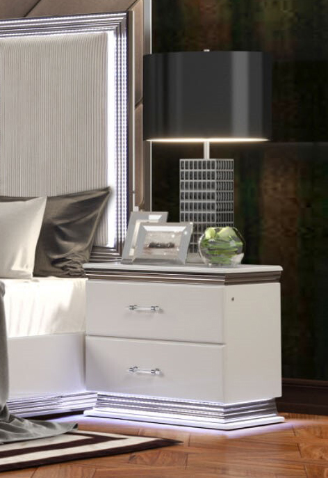 A sophisticated Kaycee nightstand with sleek modern design, enhanced by ambient LED lighting along the base. Experience the ideal combination of contemporary elegance and functionality.Read More