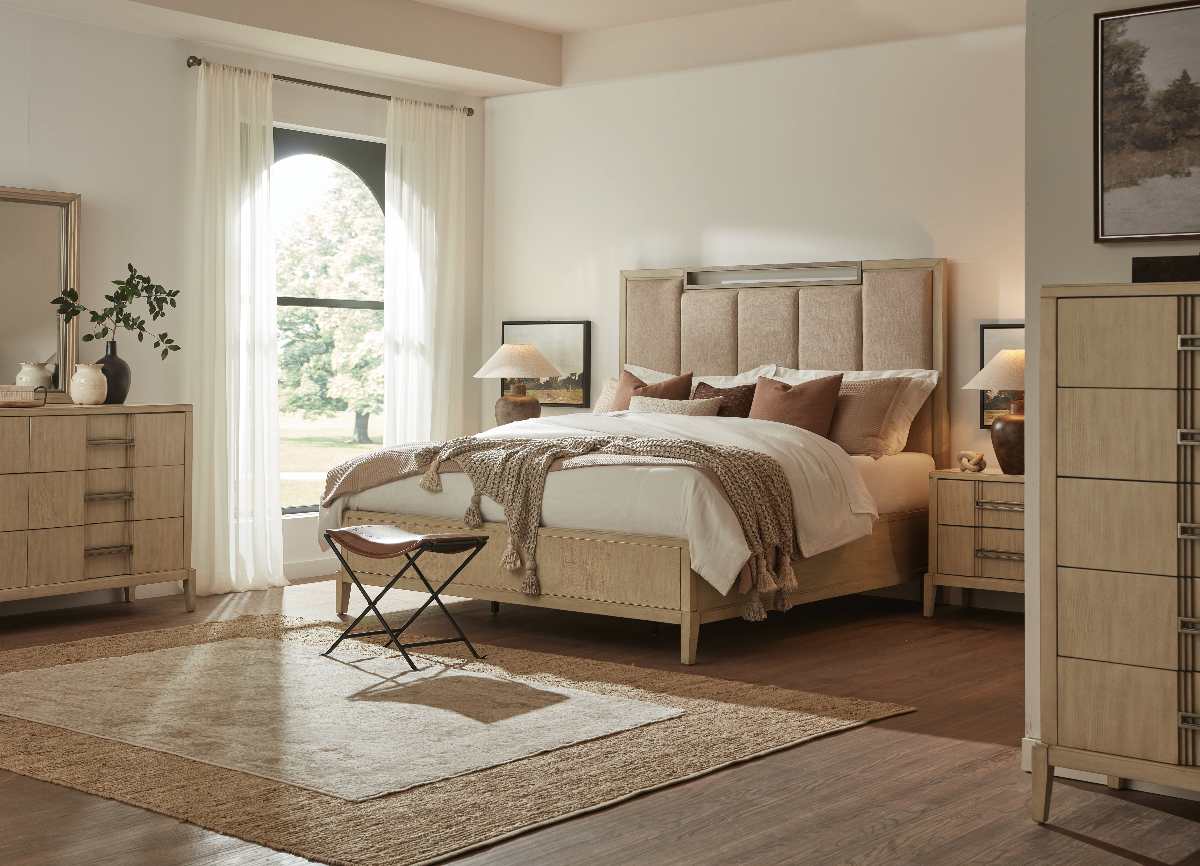 Includes Upholstered Queen Panel Bed, Dresser, Mirror & NightstandRead More