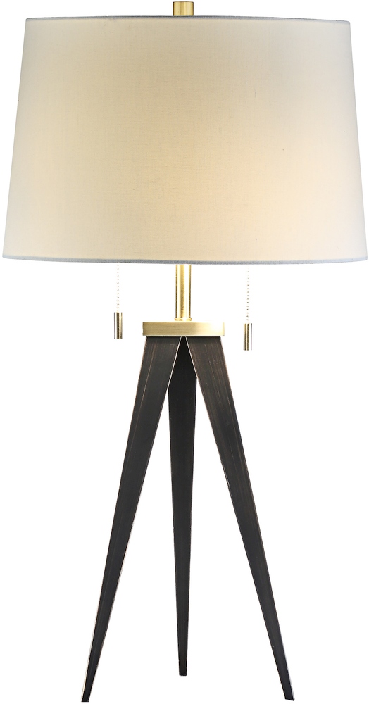 Lennon table lamp 32", metal bronze and antique brass finish with off-white linen shade.