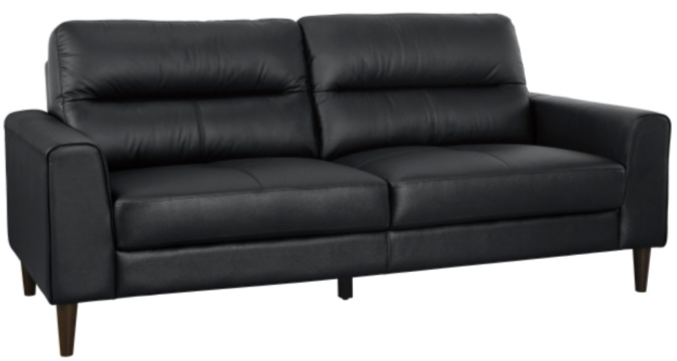 Modern comfort is paired with retro lines to create the design of the Lewes collection. Covering the sofa is black 100% top grain leather where the body touches, while all other areas feature faux leather. Track arms and contoured seating lend to the versatile modern look.Read More