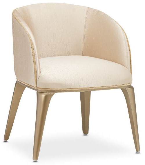 Sit comfortably in luxury every day! The Malibu Crest Vanity / Side Chair looks lovely in front of the vanity mirror and at the dining table alike. With silk-like upholstery and curving Burnished Gold legs, this chair will help your style shine.Read More