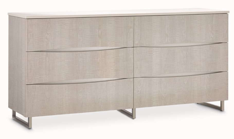 Generouly scaled with 6 velvet lined drawers, the Marin dresser is adorned with contrasting cultured marble top, stainless accents on case front, and stainless-steel feet. The self-closing glides offer ease of function.Read More
