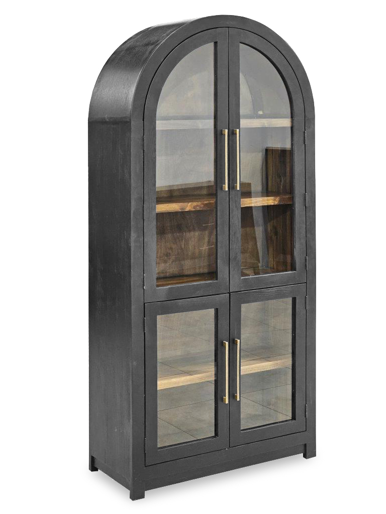 Crafted from solid wood, this piece features a durable construction complemented by fixed shelves for reliable storage. It is finished in a sophisticated two-tone acrylic paint, enhancing its visual appeal. The design includes four glass-panel doors with adjustable metal hinges for smooth operation and brass-colored metal pulls that add a refined touch. Combining elegance with functionality, this unit is both a stylish and practical addition to any space.Read More