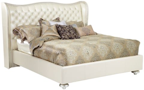 Lavish your bedroom décor in glamor and glitz with the addition of this stunning panel bed. This bed carries Creamy Pearl upholstery and features a padded headboard with a gentle arch. You will be pleased with this upholstered bed in your home décor.Read More