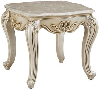 The Monique End Table features a pearl finish, curved legs and a unique design on the base of the table.Read More