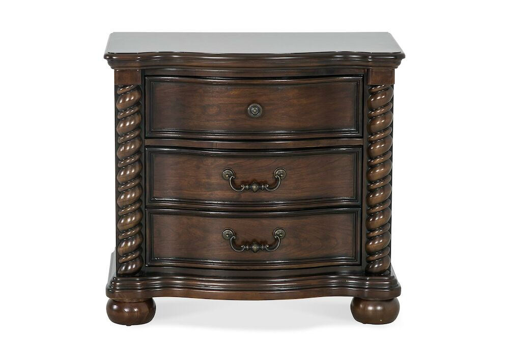 Dripping with traditional grandeur, the Montarosa 2-Drawer Nightstand is a gem of classic design. Spacious drawers come framed in dark cherry finishes, twining rope detail, bun feet, antique knob and handle hardware, and enduring elegance.Read More