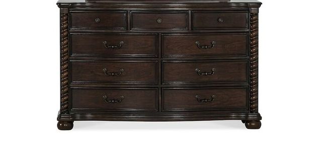 Dripping with traditional grandeur, the Montarosa 9-Drawer Dresser is a gem of classic design. Nine spacious drawers come framed in dark cherry finishes, twining rope detail, bun feet, antique knob and handle hardware, and enduring elegance.Read More