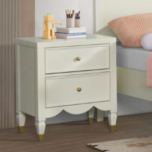 The Olivia Nightstand blends decorative scalloped detailing with two smooth-glide drawers, providing convenient bedside storage. Its ivory finish and gold hardware create a sweet, polished look that complements the entire Olivia collection.Read More