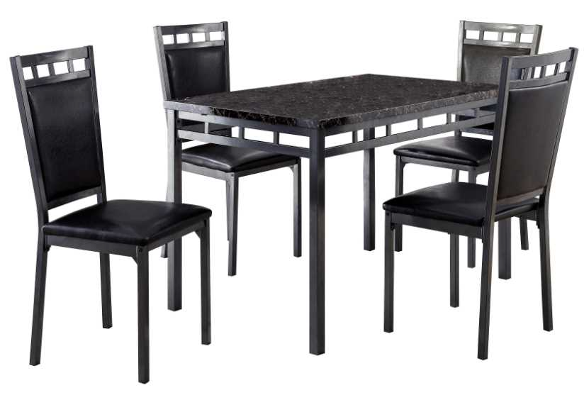 Designed for your modest dining space, the Olney Collection provides a stylish and functional surface for your mealtime needs. The 5-piece packed group features a metal table base that rises to support the traditional dining height, faux marble tabletop.Read More