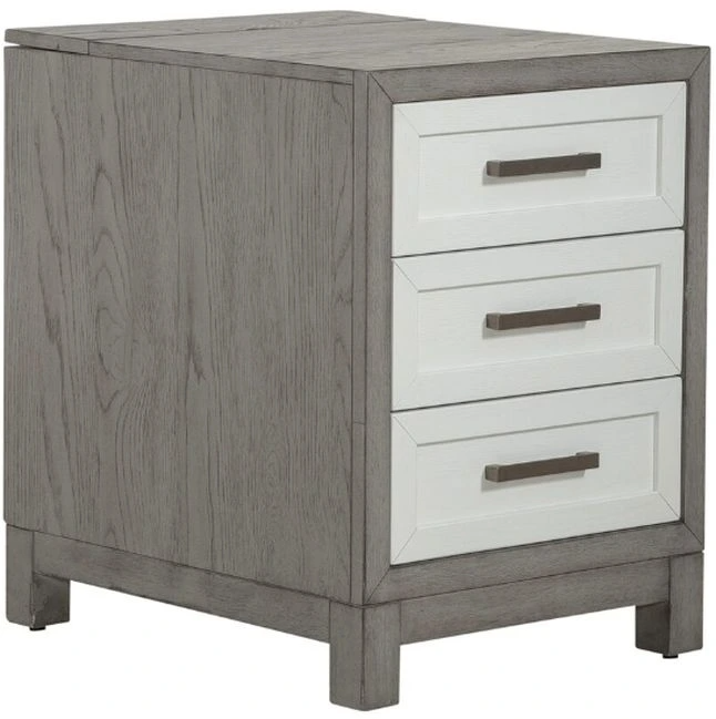 Home and perfection are achievable with the Palmetto Heights three drawer chairside table. Crafted with excellence using rubberwood solids and split heart cathedral white oak veneers, this three drawer chairside table features a two-tone Driftwood and Shell White finish.Read More