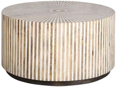 A natural fit for urban and suburban home décor, the Downtown round cocktail table offers a casual luxury with a youthful, slightly Boho vibe. Organic yet refined, this 38 inch diameter table is made from mango wood and bone inlay in a beautiful radial pattern. Casters have been added for easy mobility.Read More