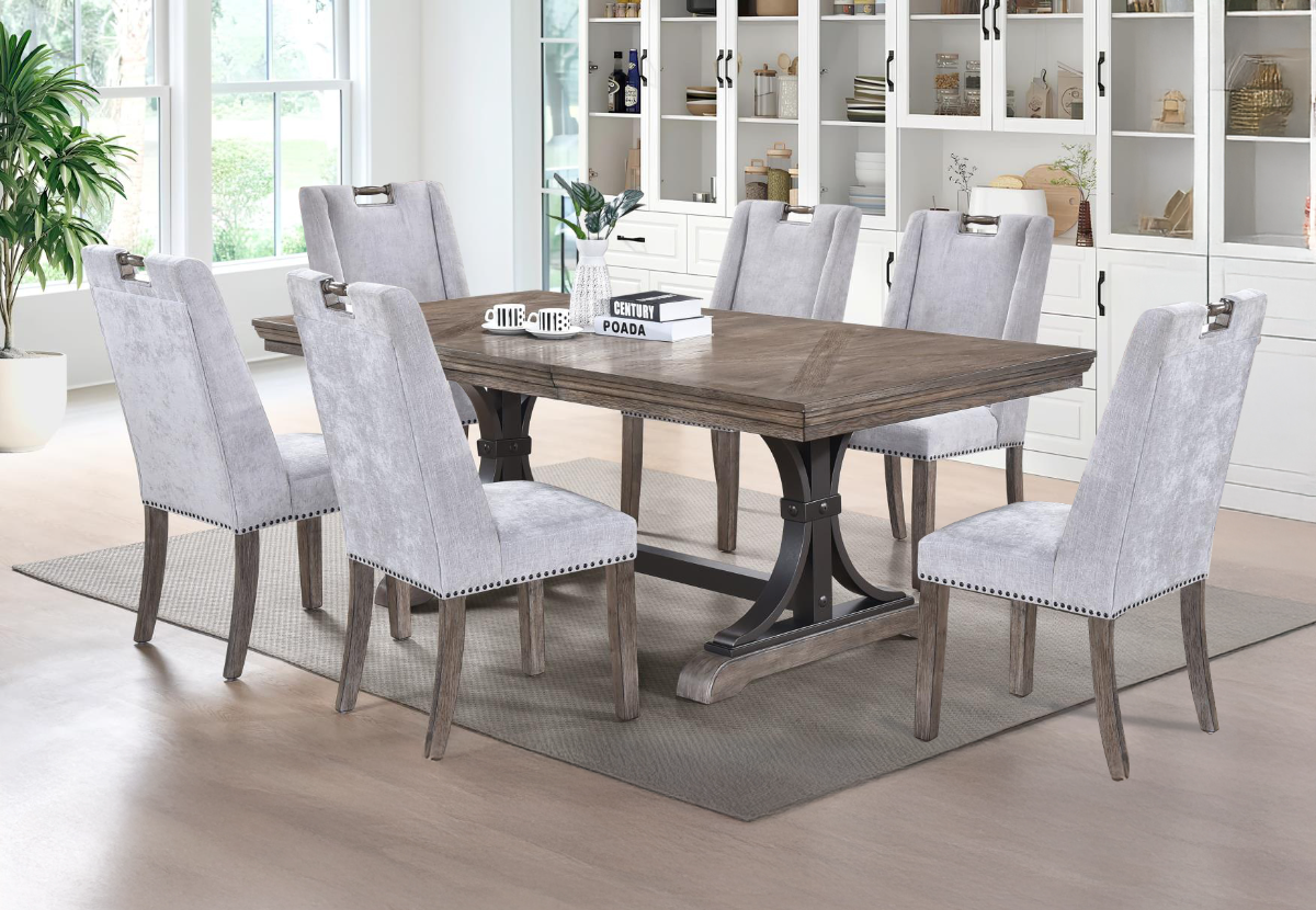 The Portland dining set showcases a rectangular trestle table made from solid wood, designed with a strong, heirloom-style base. The natural finish brings out the wood’s organic grain, adding rustic warmth, for a timeless, welcoming feel. Combining rugged strength with understated elegance, this table perfectly merges farmhouse appeal with practicality, ideal for intimate meals and cozy gatherings.