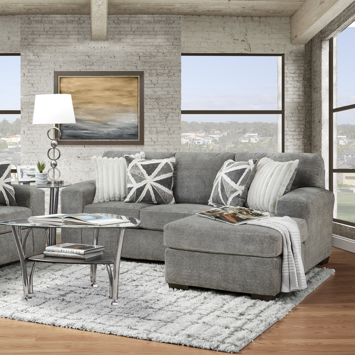 This 2-pc. sofa chaise combines contemporary design with cozy comfort, making it a versatile addition to any living space. Its soft gray upholstery and compact size are ideal for smaller rooms, apartments, or as an accent piece. Crafted with a hardwood frame and plush cushions, this sectional offers both durability and style.Read More