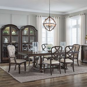 The Provence 7-Piece Dining Set by Liberty Furniture brings timeless European elegance to your dining room. Crafted from premium hardwood solids and oak veneers, this classic dining set includes a rectangular dining table, two upholstered arm chairs, and four cross-back side chairs.Read More