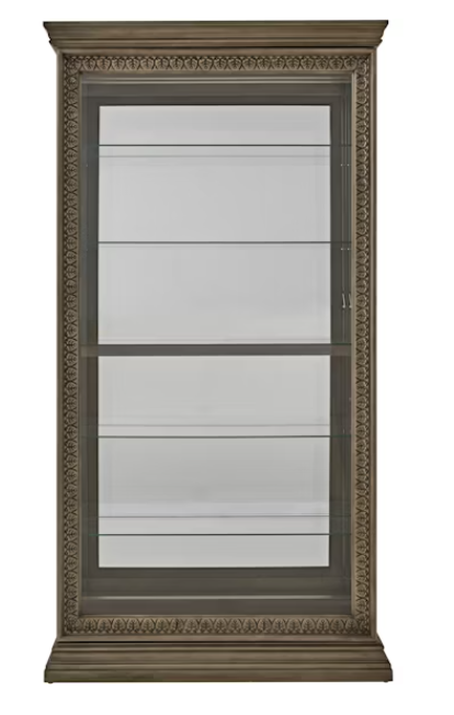 Display your favorite collectibles in style with the Sliding Door Curio. The sliding door, framed with intricate decorative carvings, adds a touch of artistry while providing easy access to the interior. Four adjustable/removable glass shelves and one stationary glass shelf offer a transparent design for a floating effect. An LED puck light at the top illuminates the interior, casting a gentle glow that enhances the beauty of your cherished belongings. This piece is perfect for dining rooms, living areas, or entryways, serving as a striking focal point that blends classic charm with modern convenience.Read More