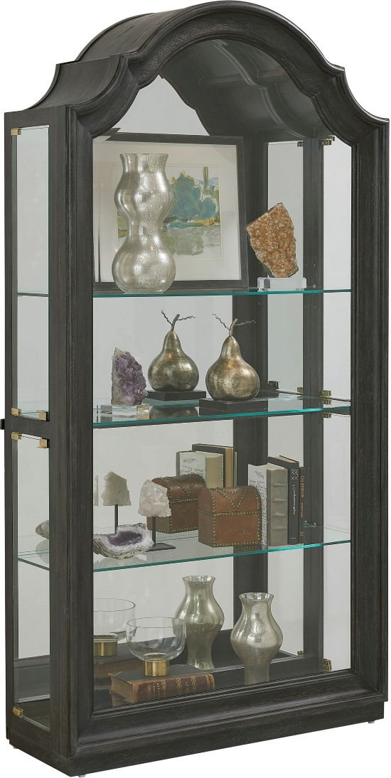 Features a gracefully shaped top, side entry access, two adjustable/removable glass shelves, and one fixed glass shelf, offering ample space to display your treasured items