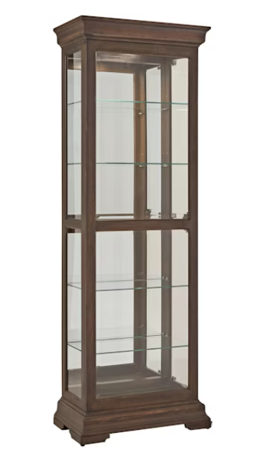 The Traditional Side Entry Curio is a refined storage option crafted with elm veneers and beech solids. Its crown molding top, adjustable/removable glass shelves, and glass panels on the sides and front allow for a full view of the items inside, providing the perfect display for your cherished items. A simple push mechanism on the side entry doors offers convenient access, combining convenience with minimalist style. This curio blends style and practicality, making it a stunning addition to dining rooms, living areas, or entryways.Read More