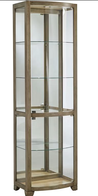 Elegantly display your cherished items with our modern-style Glass Door Curio, made from durable hardwood solids and grained ash veneer. This piece features a slightly curved front that adds a contemporary flair to its clean lines. Glass doors open to reveal a well-lit interior, enhanced by an LED puck light that beautifully showcases your collectibles, fine china, or decorative accents. Inside, three adjustable/removable glass shelves and one stationary glass shelf provide versatile display options to suit your needs. This curio’s sophisticated design and functional features make it a standout piece for your dining room, living area, or entryway.Read More