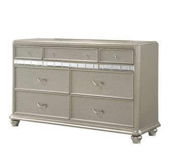 Glitz, glam, and glittering elegance are here to dazzle in the Regency Platinum 7-Drawer Dresser. Ample storage space comes cased in gleaming high-finish sides, fluted pillar framing, and twinkling crystal knob and swooped handle hardware. A final mesmerizing note is found in the mirror piece detailing that captures the light like a diamond trim.Read More
