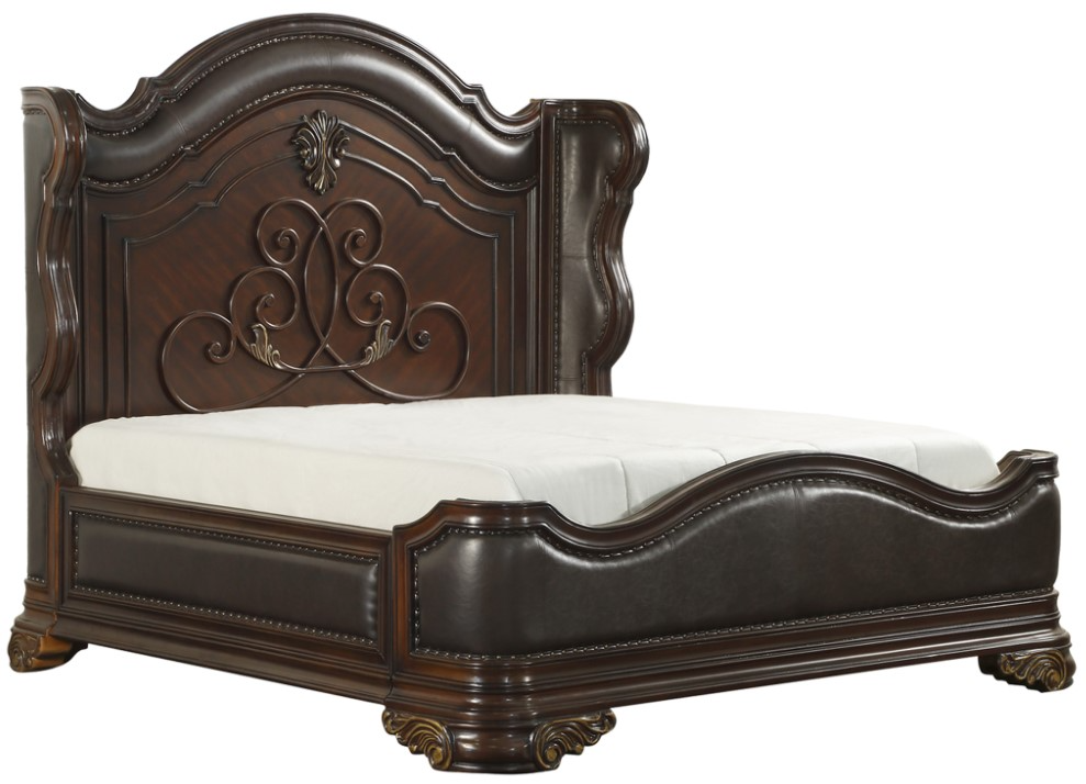Grandly styled for the traditional home is the Royal Highlands Collection. Prominent decorative scrolling adorns the headboard while heavier, carved scrolling accents the pilasters and feet of each piece in the collection. The substantial wood framing of the bed creates a distinct serpentine profile that carries into the design of the case pieces.Read More